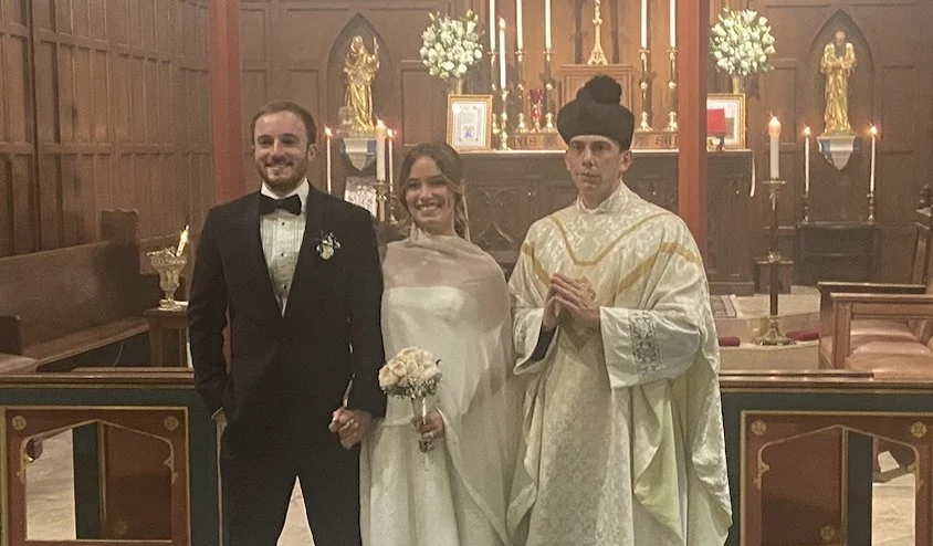 Western Chaplain, Fr John Boles, concelebrated the Mass. In his homily, Fr. John mentioned that the marriage takes place in the midst of so many great feast days. "And just like the calendar, everything in our lives should center on Christ. At your baptisms, God made you whole and gave you your vocations, concretized now in your marriage, to become holy as husband and wife, together."